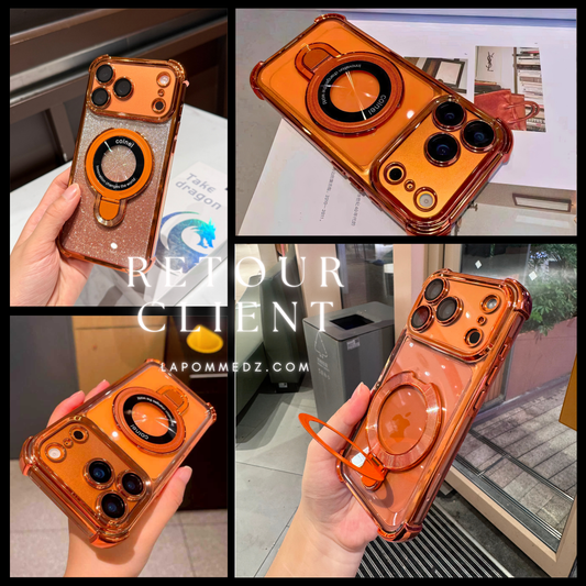 Coque 14 pro max magsafe avec protection de caméra ouverte et support / غطاء ١٤ برو ماكس مع تقنية ماڨسيف وحماية مدمجة للكاميرا