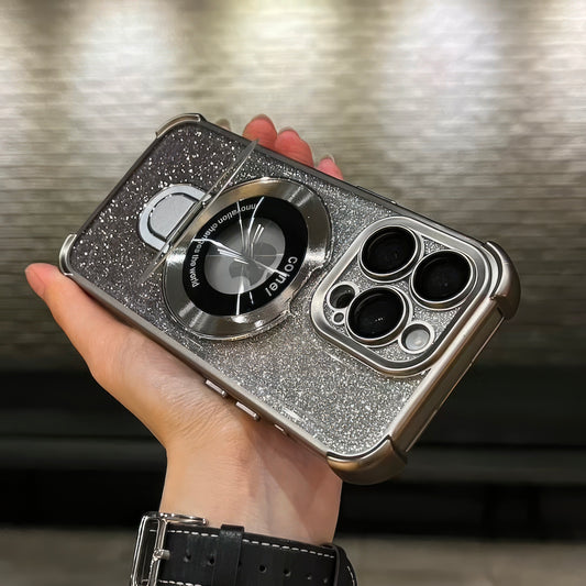 Coque Luxe 15 pro max brillante avec support et protection de caméra intégrée / غطاء لامع لآيفون 15 برو ماكس مع حامل وحماية مدمجة للكاميرا