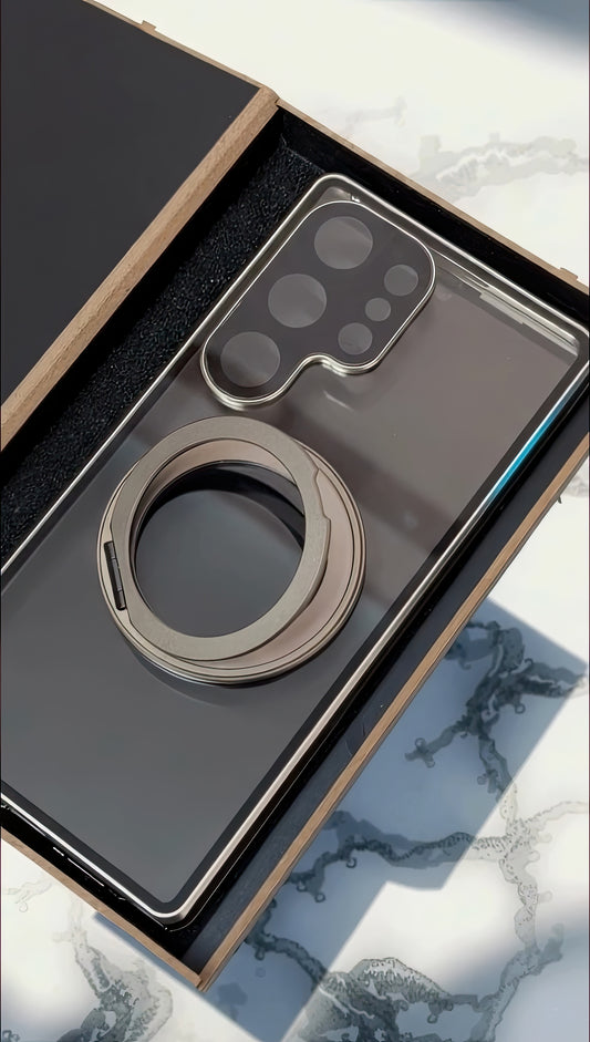 Coque Luxe S25/S24 Ultra brillante avec support et protection de caméra intégrée / غطاء لامع S25/S24 Ultra مع حامل وحماية مدمجة للكاميرا