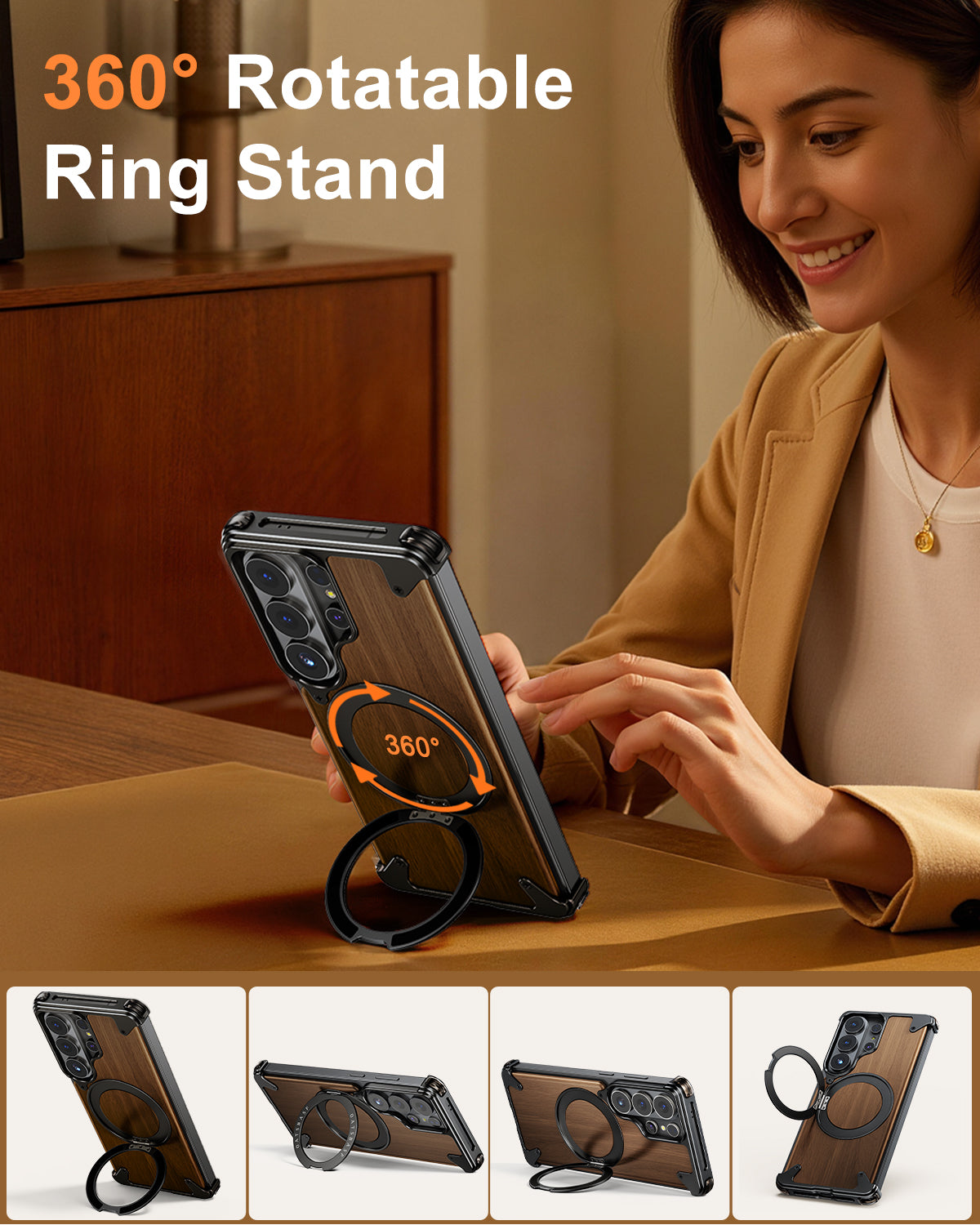 Coque S26 Ultra en Bois Massif et Métal حمايةS26 Ultra فاخرة من الخشب و المعدن
