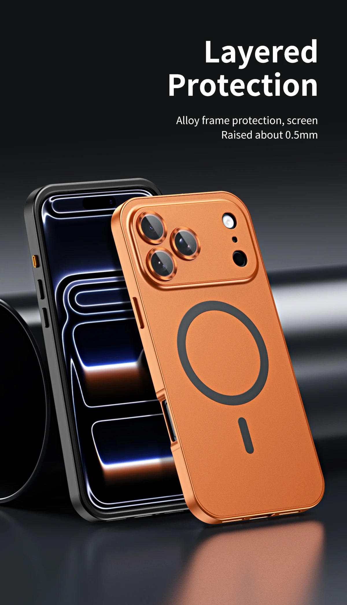 Pochette iPhone 17 pro max magsafe en métal avec protection de caméra intégrée / كيس لآيفون 17 برو ماكس من الحديد مع تقنية ماڨسيف وحماية مدمجة للكاميرا